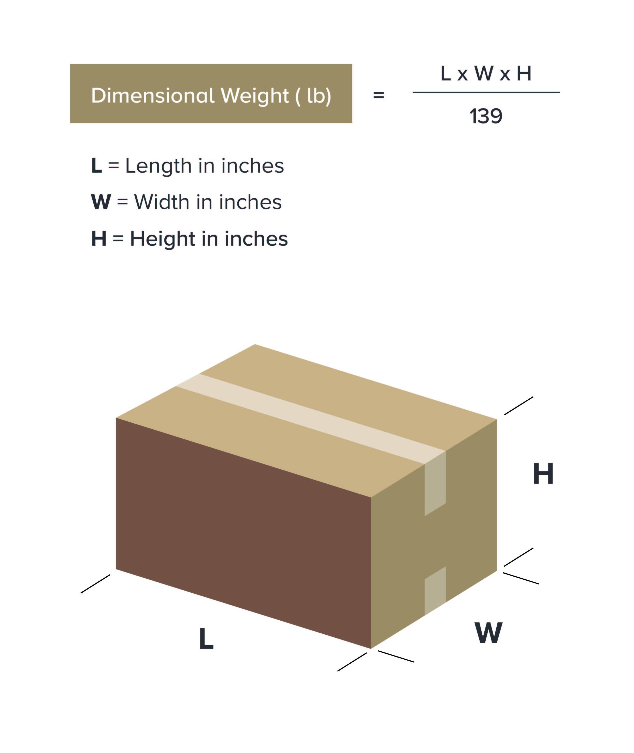 2. Use the dimensional weight formula: Dimensional Weight = L x W x H / Carrier's Official Divisor