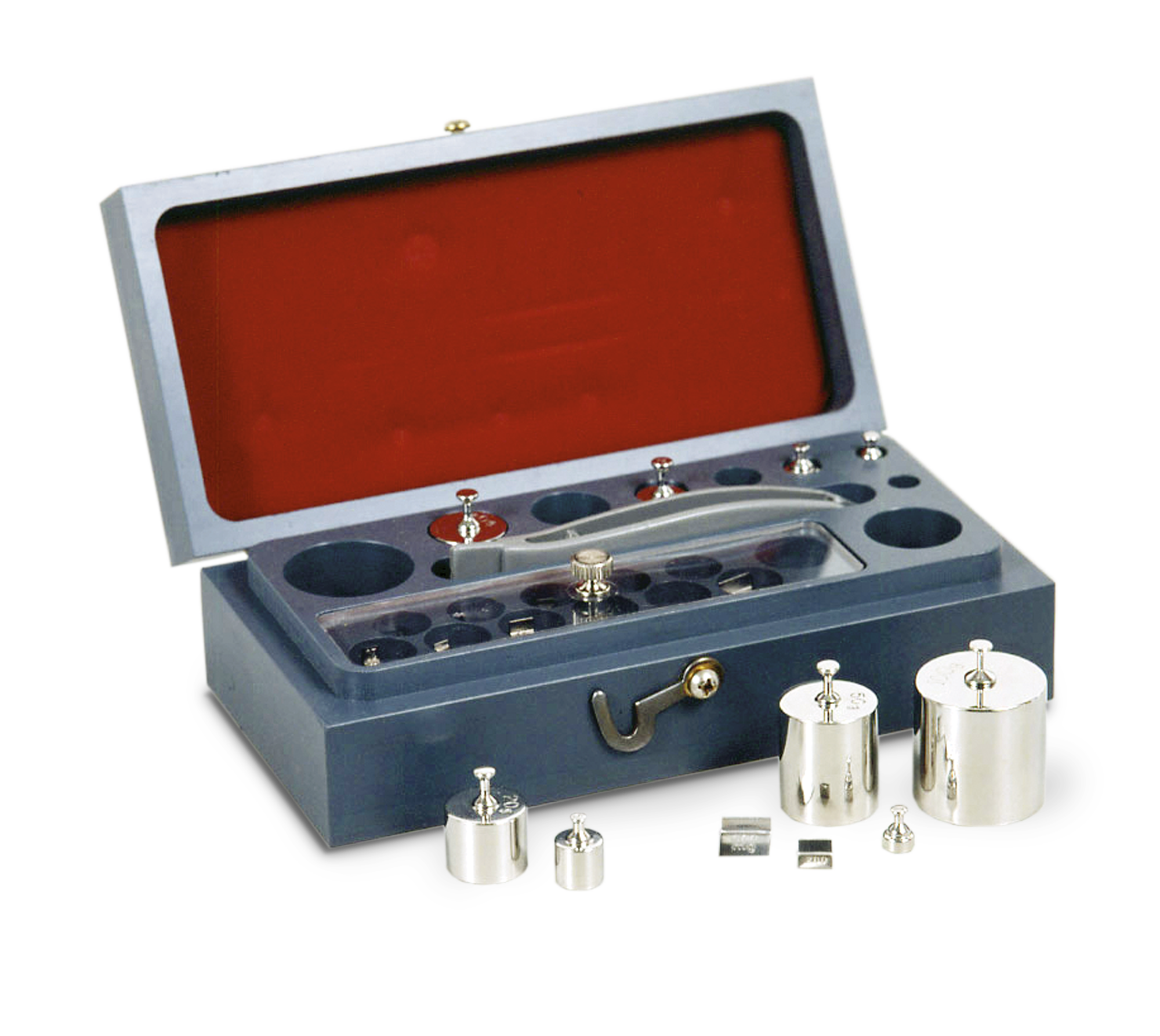 - ASTM weight sets larger than 500 g or 1 lb include a hardwood case with velvet-lined pockets