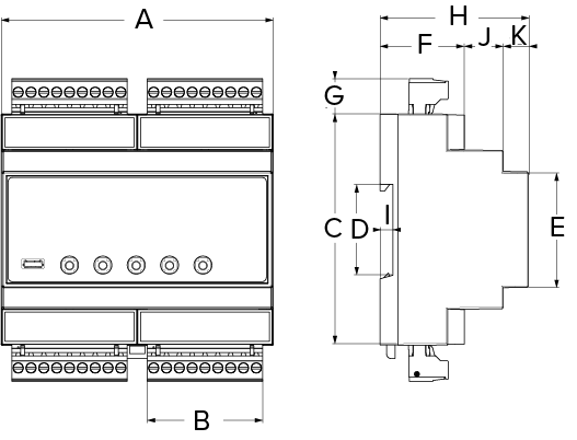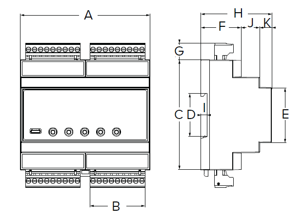 - Micro-USB communication port for configuration, diagnostics and data backup (RL Tools Software)