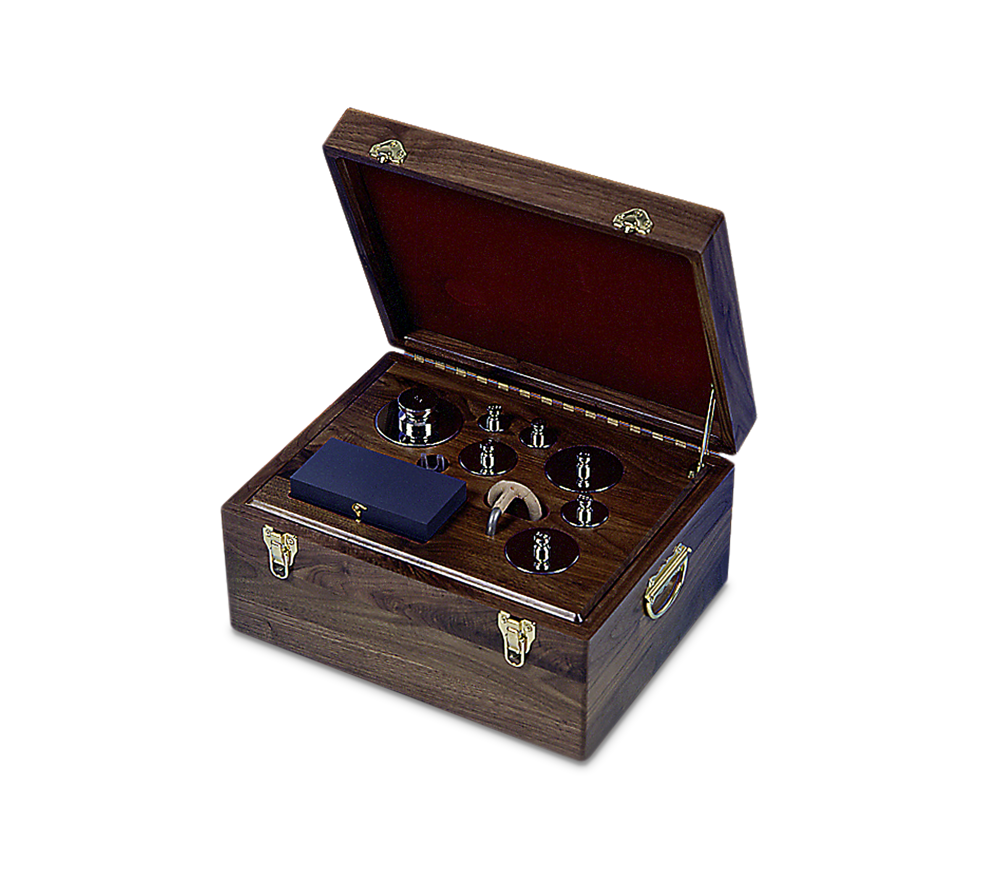 - ASTM weight sets larger than 500 g or 1 lb include a hardwood case with velvet-lined pockets