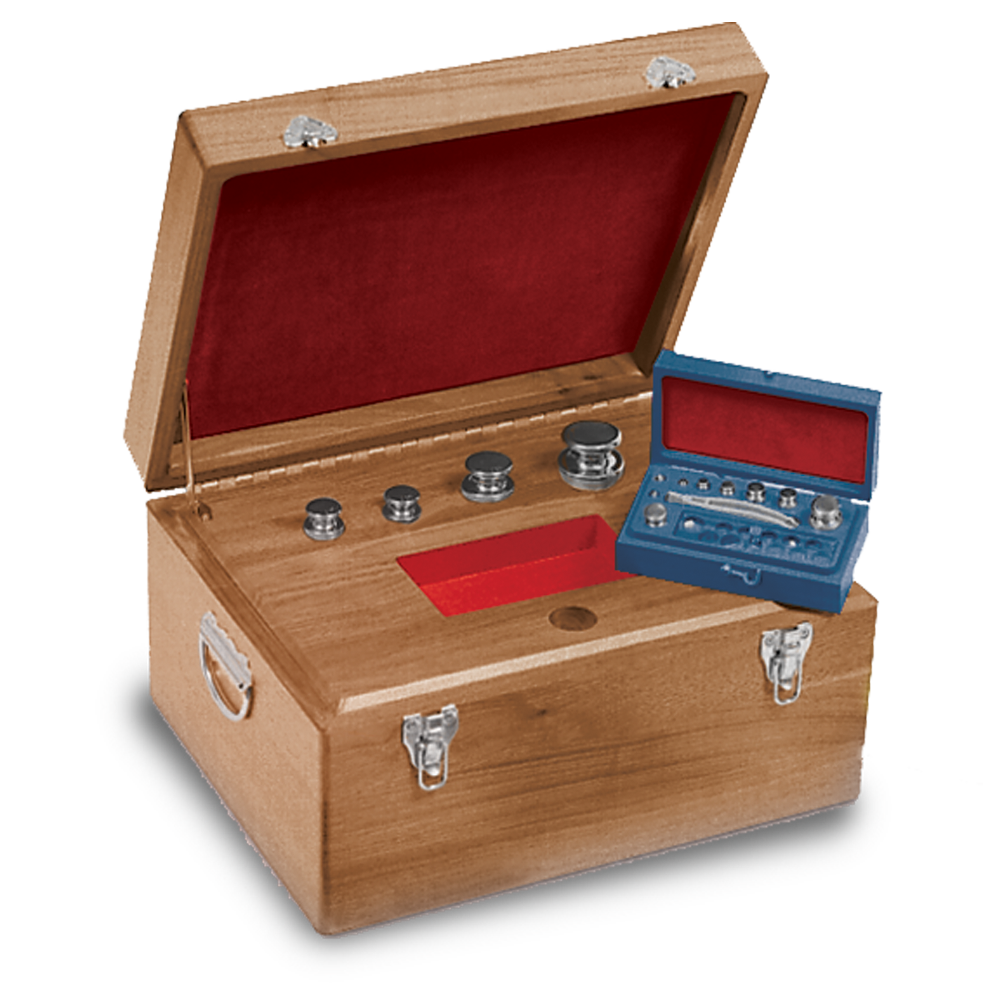 Set includes: weights, case (additional small case or vial if required) and handling equipment