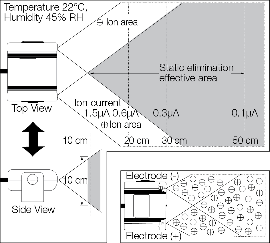 - Suited for static elimination in narrow and remote places because of its lengthy ion irradiation distance