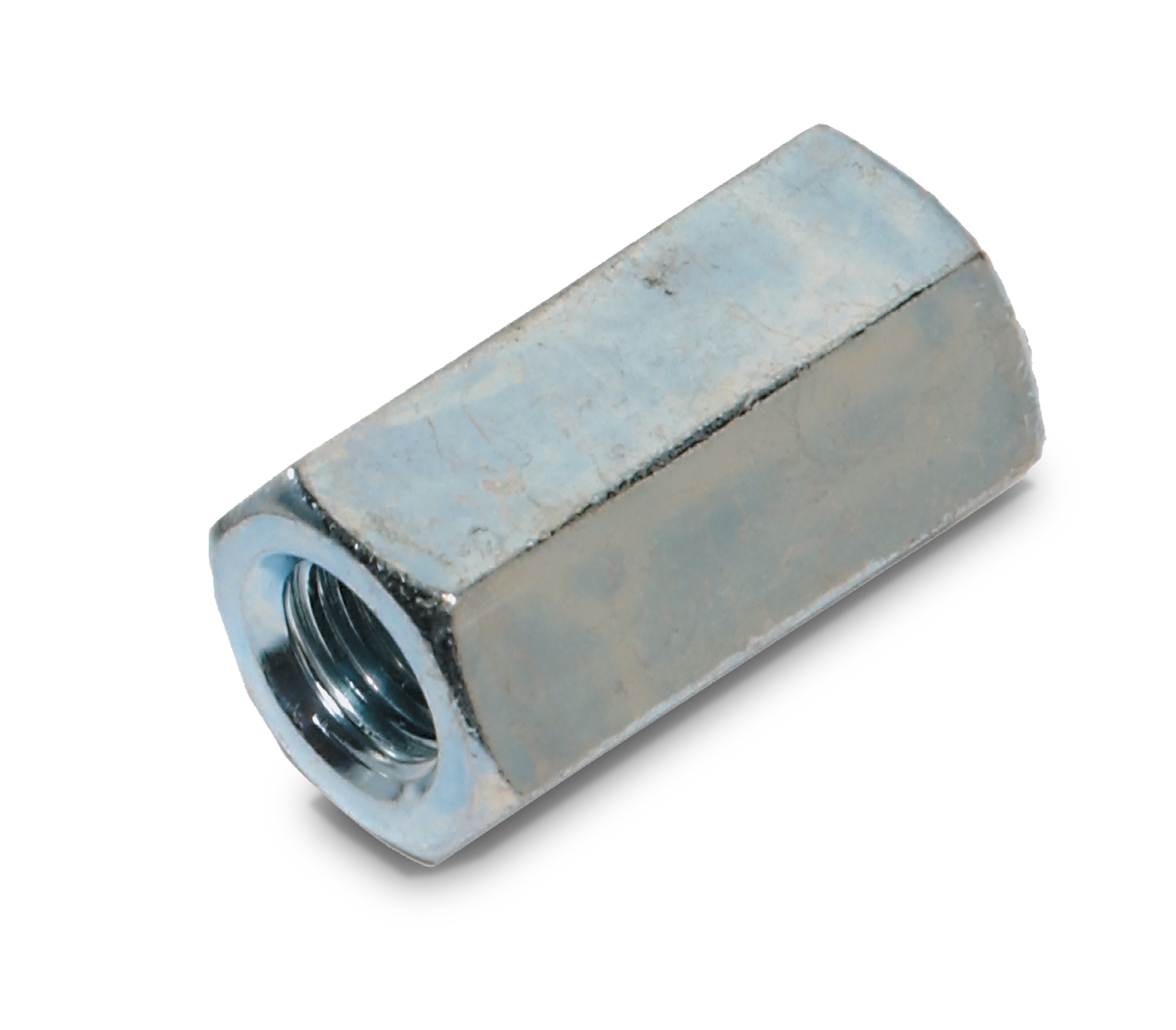 Coupling nuts are long nuts used to connect pieces of threaded rod or other male threaded fasteners.