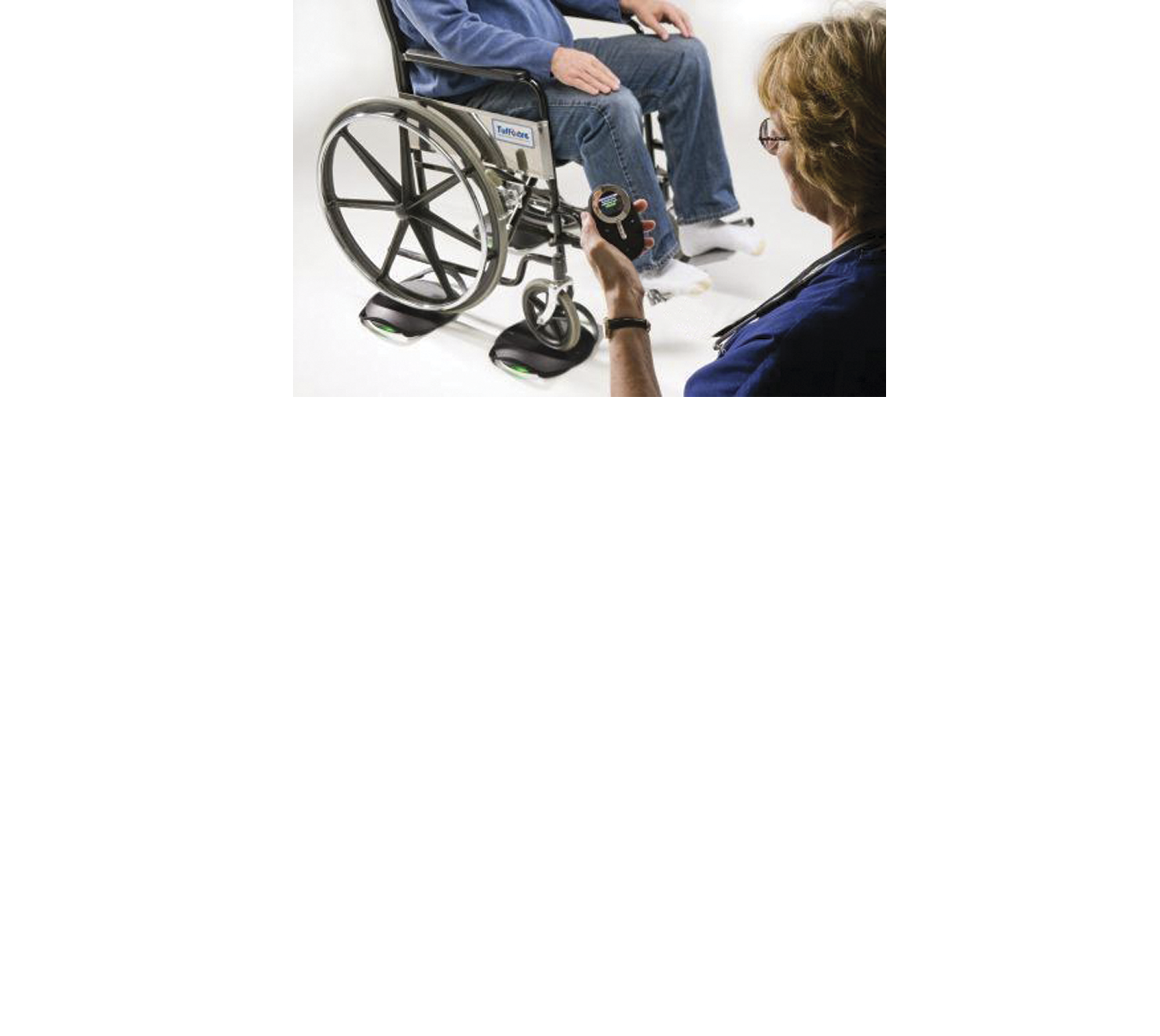 The lightweight yet durable D300 Series Healthweigh® wireless wheelchair scale consists of four pads to weigh wheelchair-bound patients in environments where portability is key. The wheelchair is simply rolled onto the four pads, which communicate wirelessly to the handheld controller. Measurements from each pad are automatically combined and the total weight is displayed.