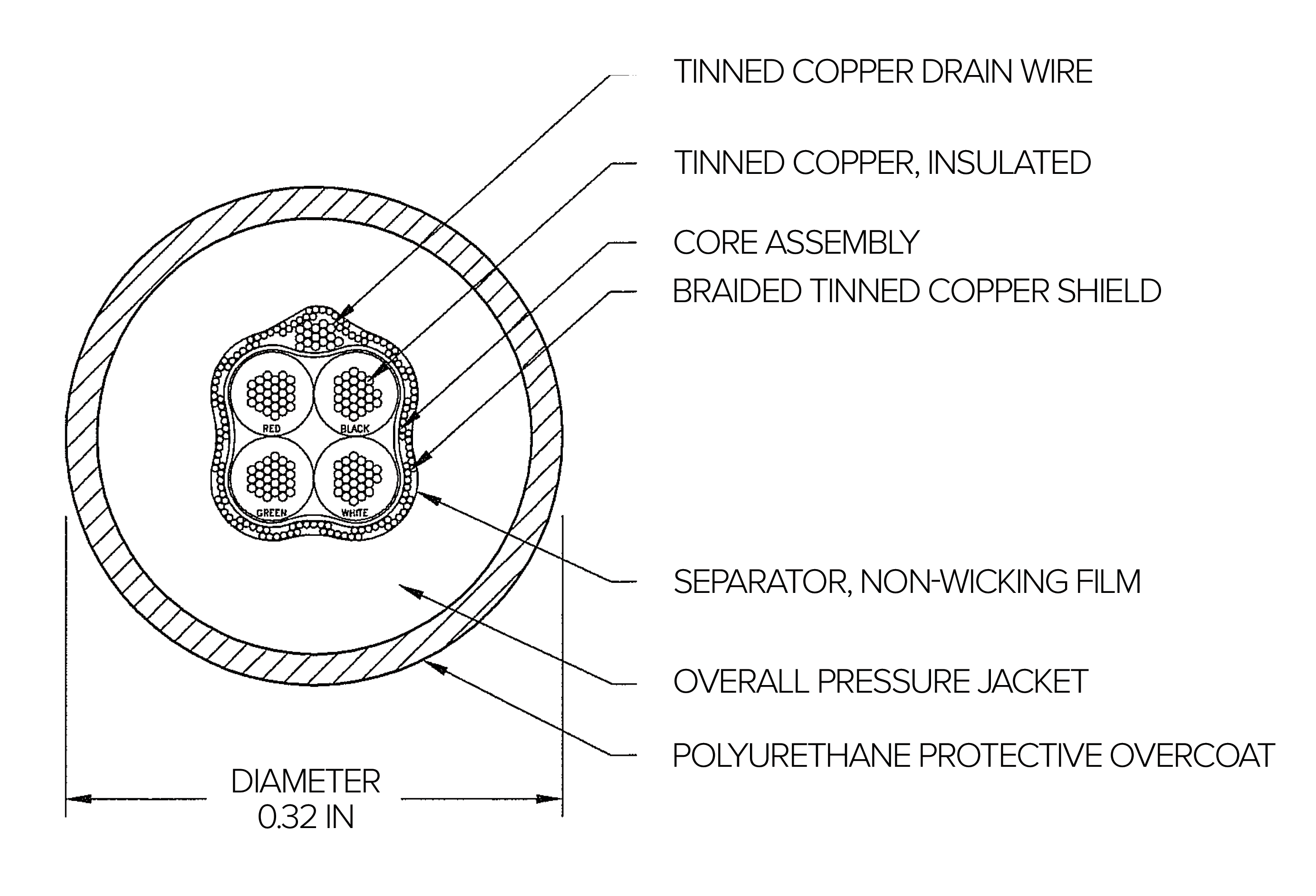 | 15513 | 1,000 ft | Four-conductor hostile environment cable |