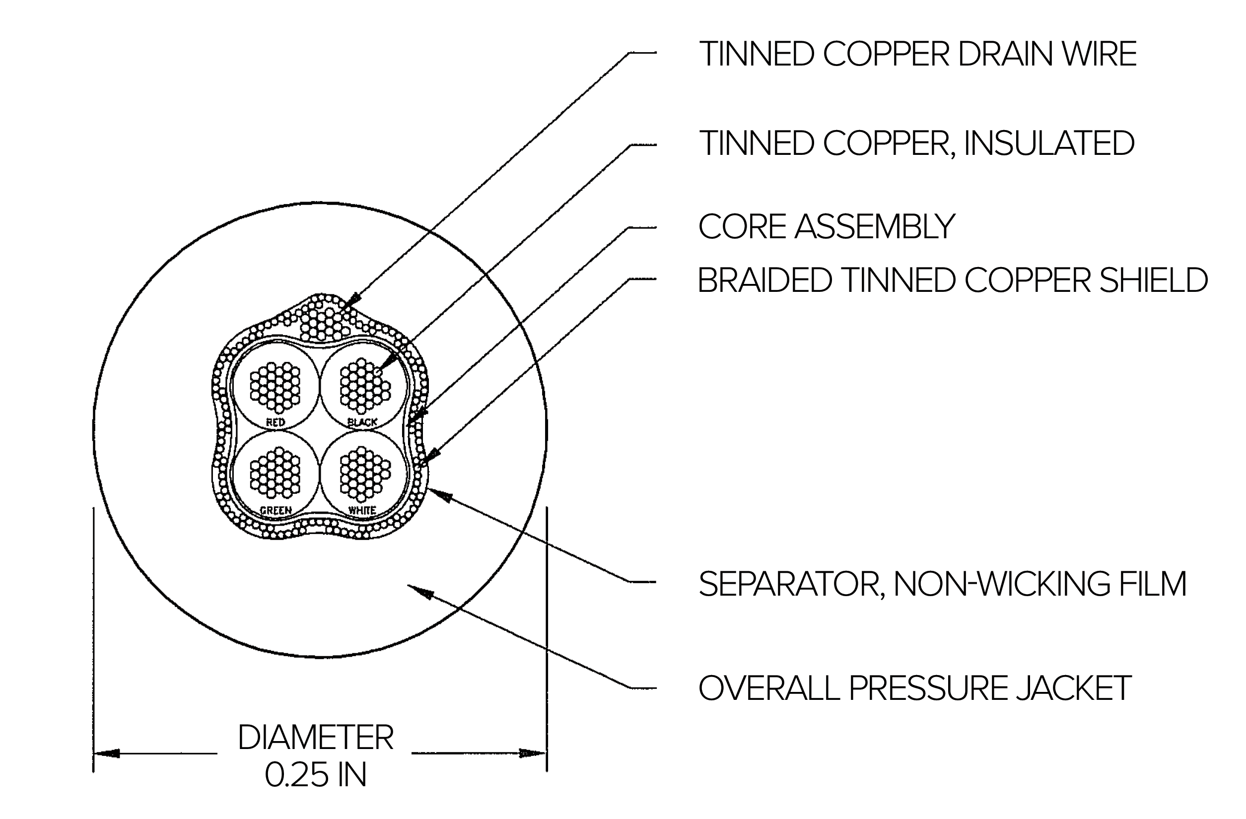 | 15511 | 250 ft | Four-conductor hostile environment cable |