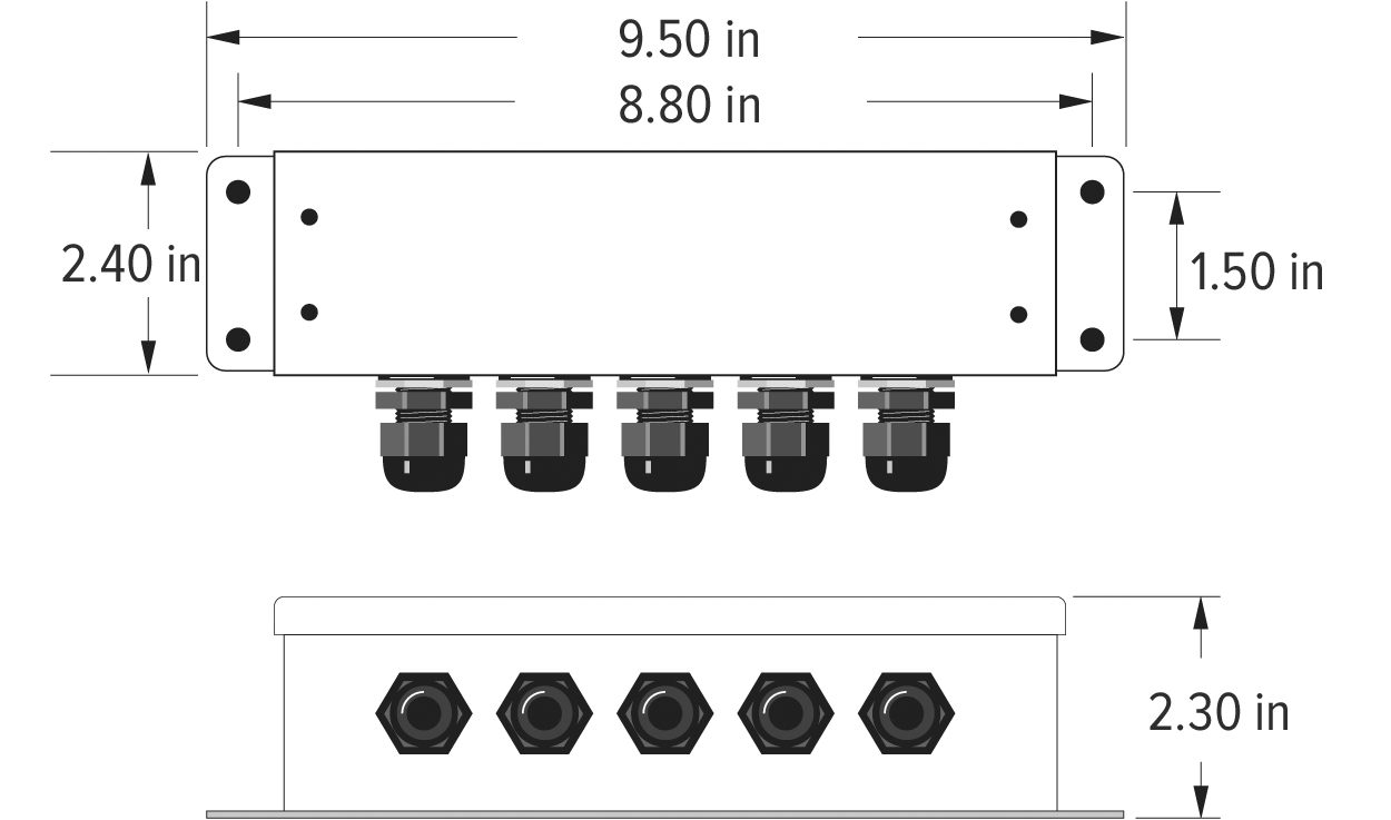 | 165274 | EL504 Enclosure Only EL504 junction box enclosure with cord grips and cover |