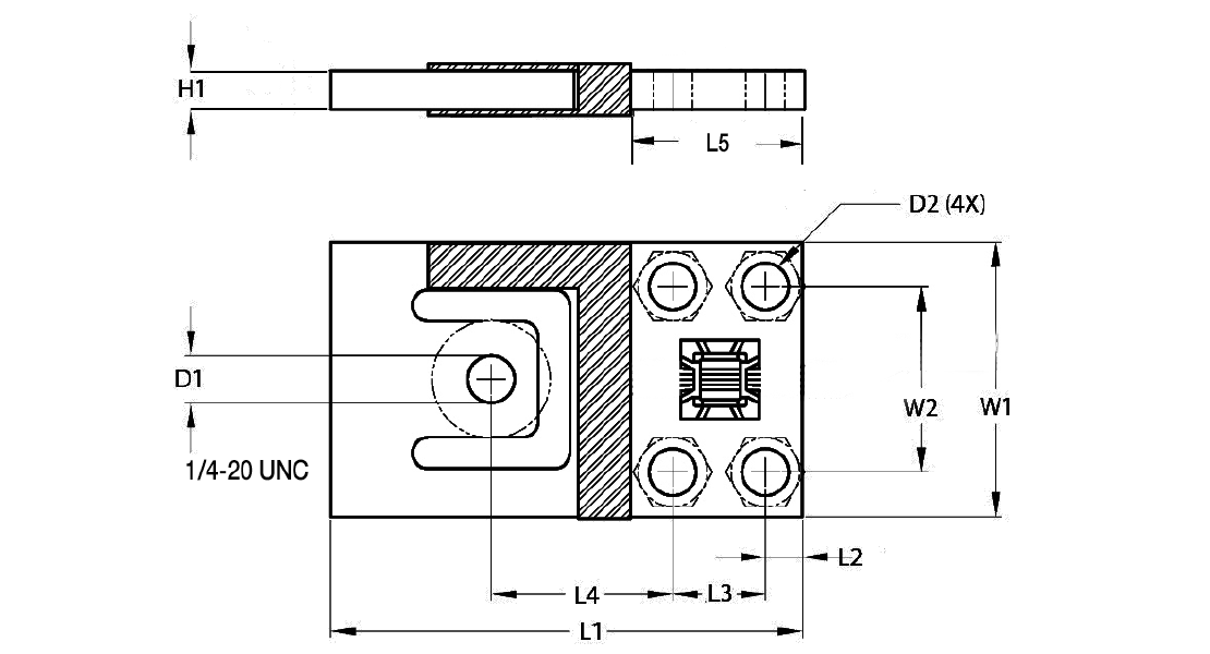| Rated Capacity | L1 | L2 | L3 | L4 | L5 | W1 | W2 | H1 | D1 | D2 | Deflection (mm) at E max |