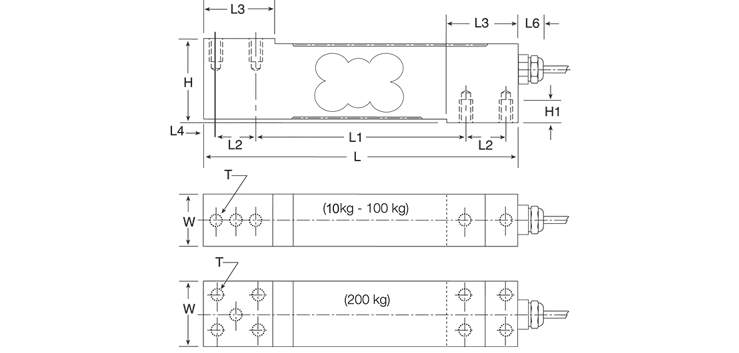 | Rated Capacity | H | H1 | L | L1 | L2 | L3 | L4 | L6 | W | T |