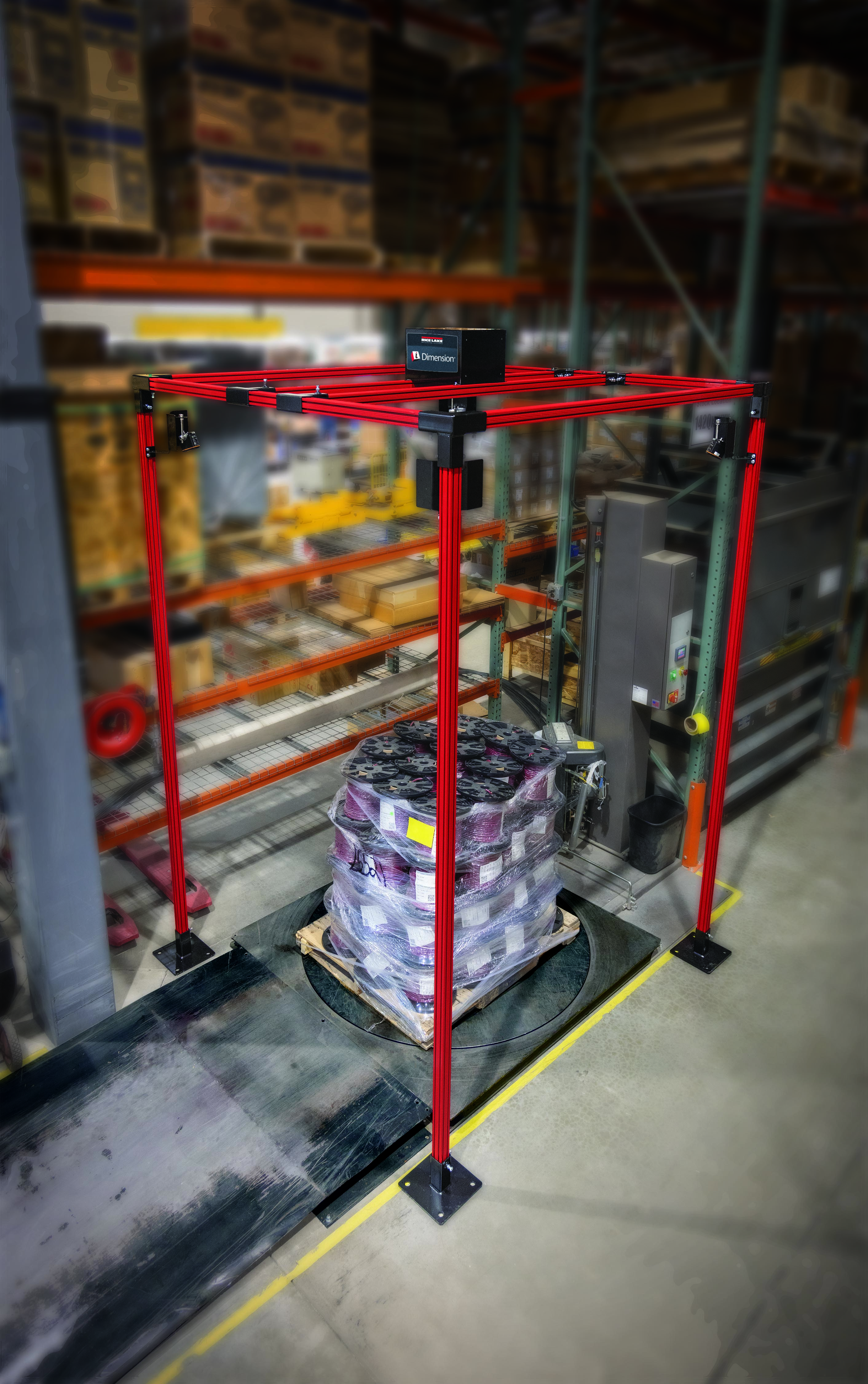 The iDimension Flex Series is available in two different configurations: free-standing and suspended. Both versions provide clear access to the dimensioning zone. When the iDimension Flex is installed above a conveyor or pallet stretch wrapper, you can efficiently wrap, weigh and dimension freight in one step. A center sensor can be added to the junction box on iDimension Flex systems to accurately capture dimensions of freight wrapped in black plastic.