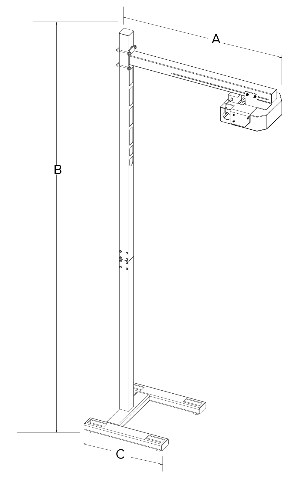 iDimension Plus uses a pre-assembled telescoping pole assembly with scanner height settings at 48 or 60 inches (1.2 or 1.5 meters) above a work surface. The second generation head is backward-compatible with the original pole assembly, making an easy upgrade path to take advantage of improved measuring capabilities. iDimension Plus is also available without a pole assembly for mounting the dimensioning head on a freestanding frame or existing structure.