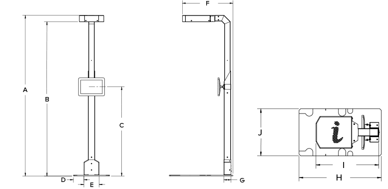 | 174660 | Floor Stand, iDimension 100/300/IQV/Plus, comes with Installation Kit (206583) and Mounting Kit for USB Display (184262). |
