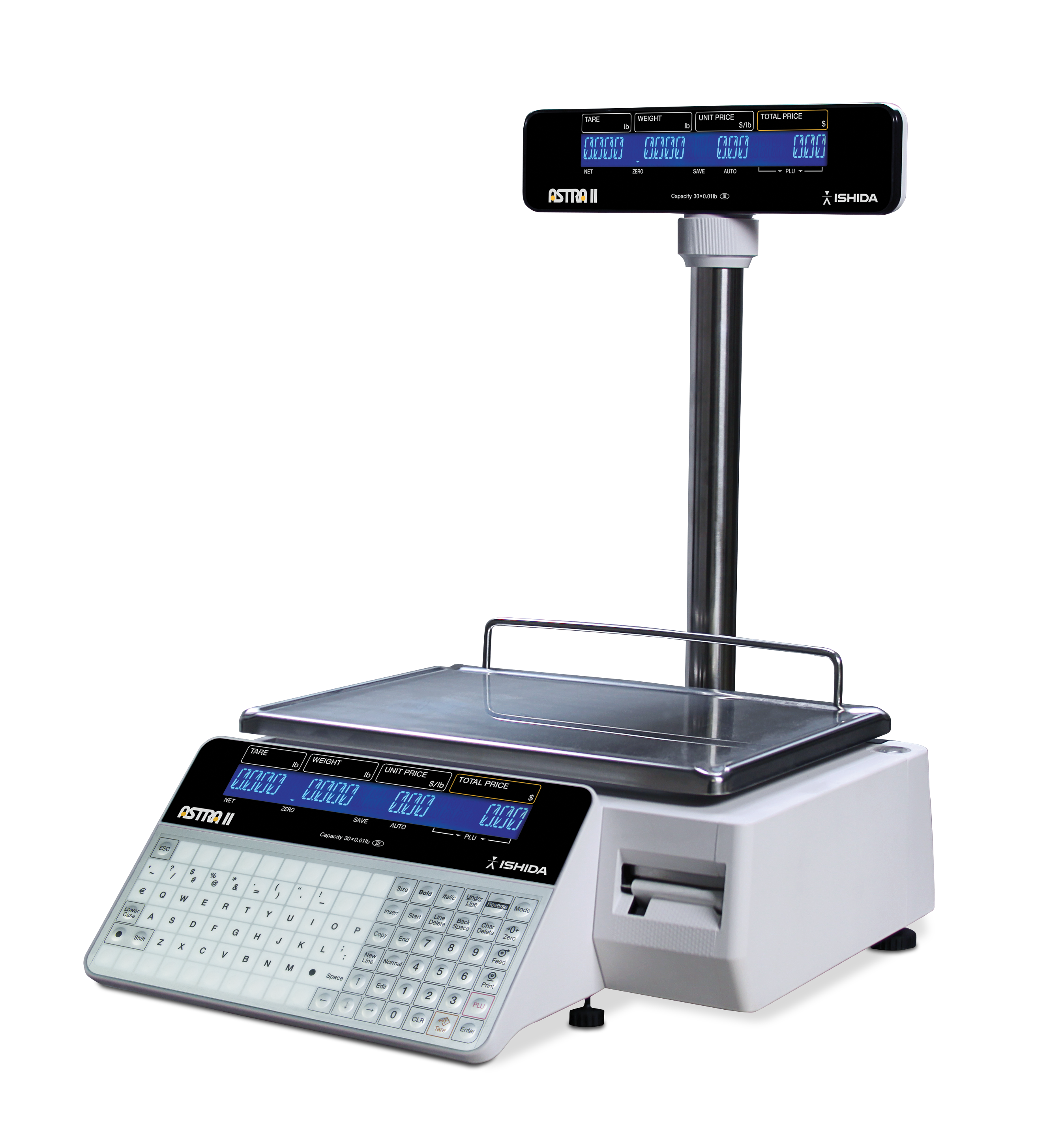 | 185822 | Retail Scale, Astra II Bench, VFD display, 0-30lbs x 0.01, Integrated Printer, 115VAC IshidA |