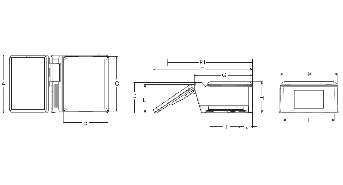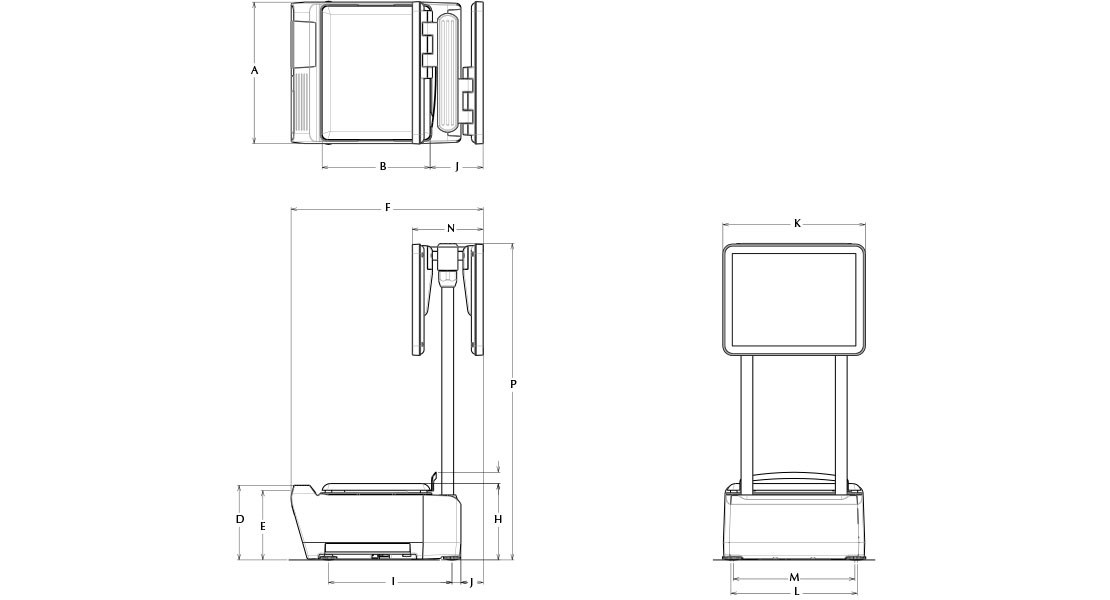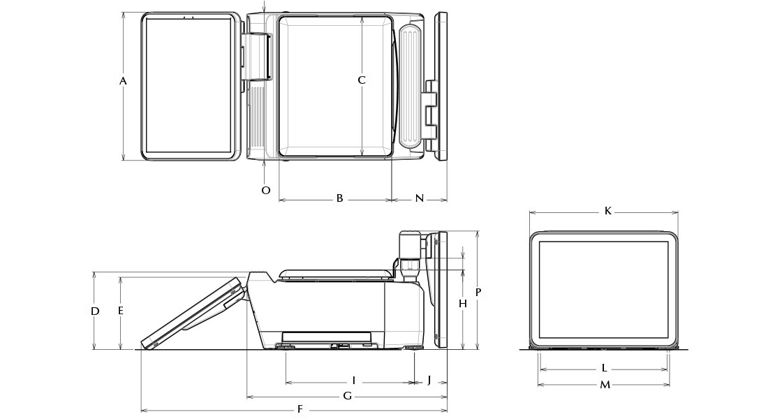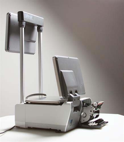 The Uni-9’s eye-level displays ensure operator focus remains on the customer. Interacting with the touchscreen can be accomplished while maintaining customer eye contact. The screens are adjustable to almost any angle, while the printer and scale base are conveniently mounted at workstation-level.
