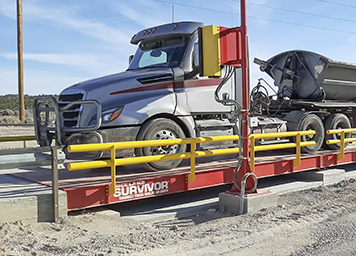 Our Safety Swing-Away Arm will swing away from vehicle cabs and mirrors and return to center after contact. These systems universally mount to any of Rice Lake's kiosk systems, and include mounting pole and base stand.