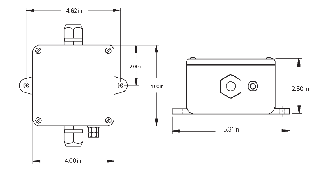 - Two nylon strain reliefs for 0.187 to 0.312 in (4.7 to 7.9 mm) diameter cable
