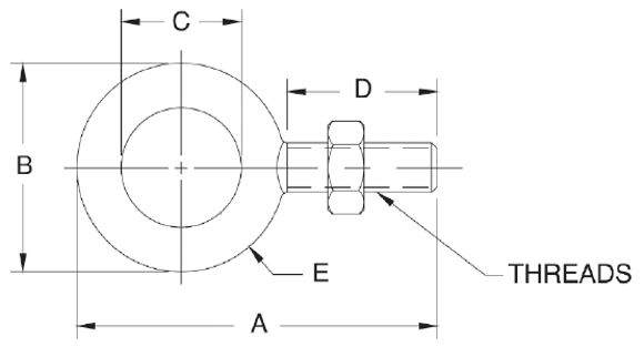 | Part # | A | B | C | D | E | Thread Size | Safe Load* |