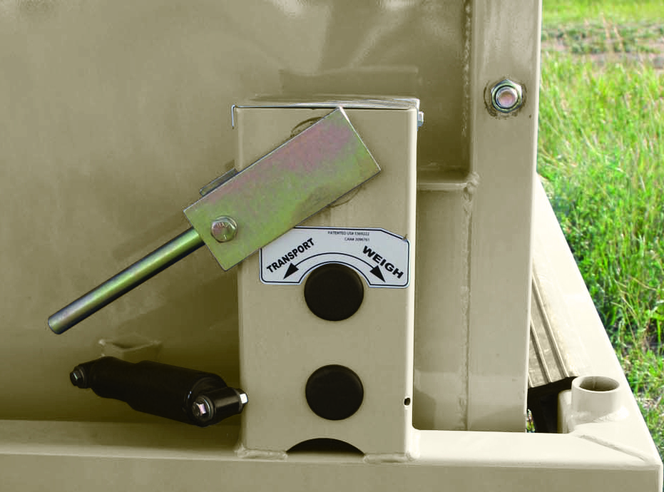 Rice Lake’s scales can weigh cattle, pigs, goats or other livestock. The onboard weighing design is suited to the unpredictable conditions of multisite use. When in transport mode, the cage is “locked down” to the base frame. This prevents cage movement and load cell damage during transport. The load is applied to or removed from load cells through a manual lift/lower lever system.