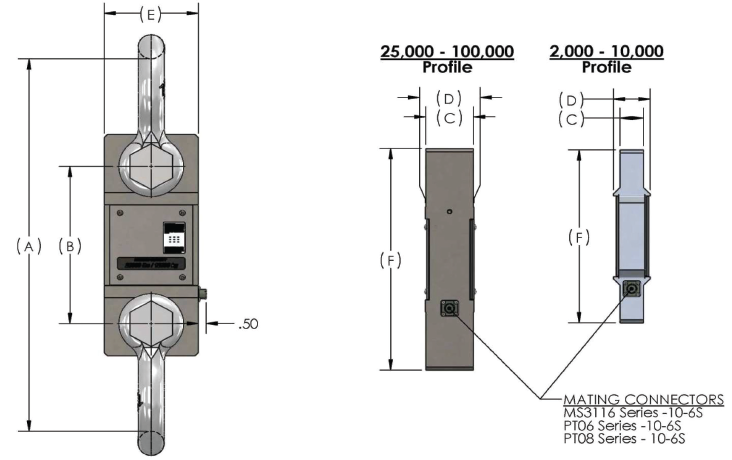Integrates between a crane block and lifting equipment to provide force measurement for lifted items. This is an ideal solution for crane weighing and features a 7:1 safety factor for compliance with industrial and military safety requirements.