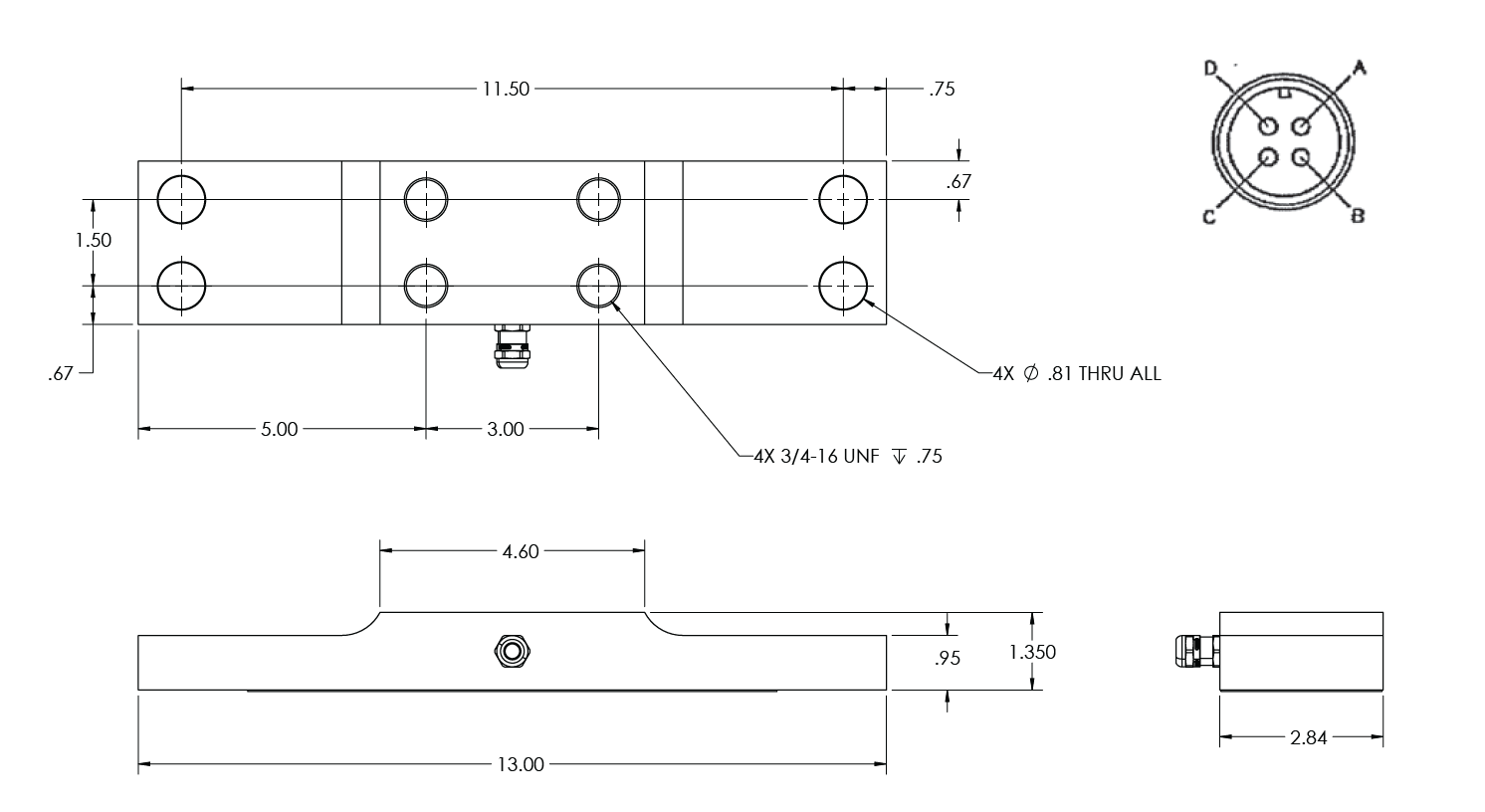 The PL9000-14 is a low-profile load cell designed for onboard weighing applications with limited height. With a single-piece bearing plate and an overall profile of only 2.4 inches, the PL9000-14 is ideal for applications with four- or six-point underbody mounts and body rest mounts.