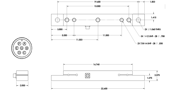 The PL9000-22 is designed for underbody mounts and low-profile axle scales such as Rice Lake's AX3040. It has a 2.4 inch profile and is 22.6 inches long.