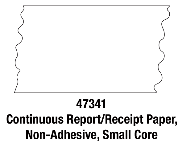 | 47341 | 64 mm × 50 m (2.52 in × 164 ft), continuous blank roll (non-adhesive receipt/report paper) |
