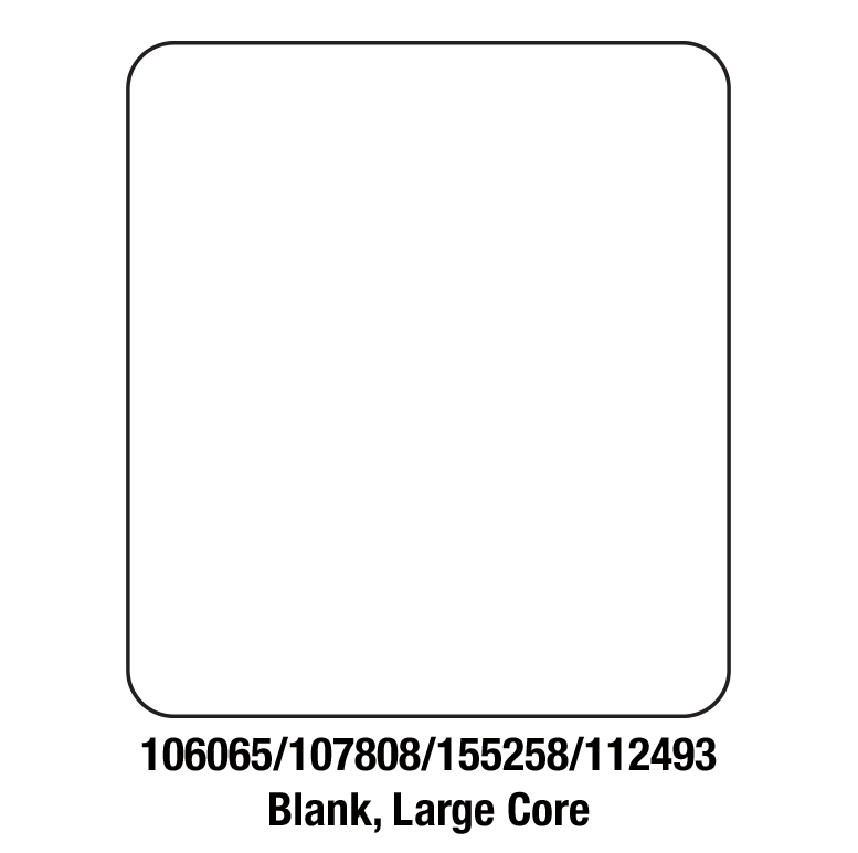 | 112498 | 64 × 110 mm (2.52 × 4.33 in) blank, 3 in core, 9 in outer diameter | 1,900 labels/roll | 5 rolls/case |