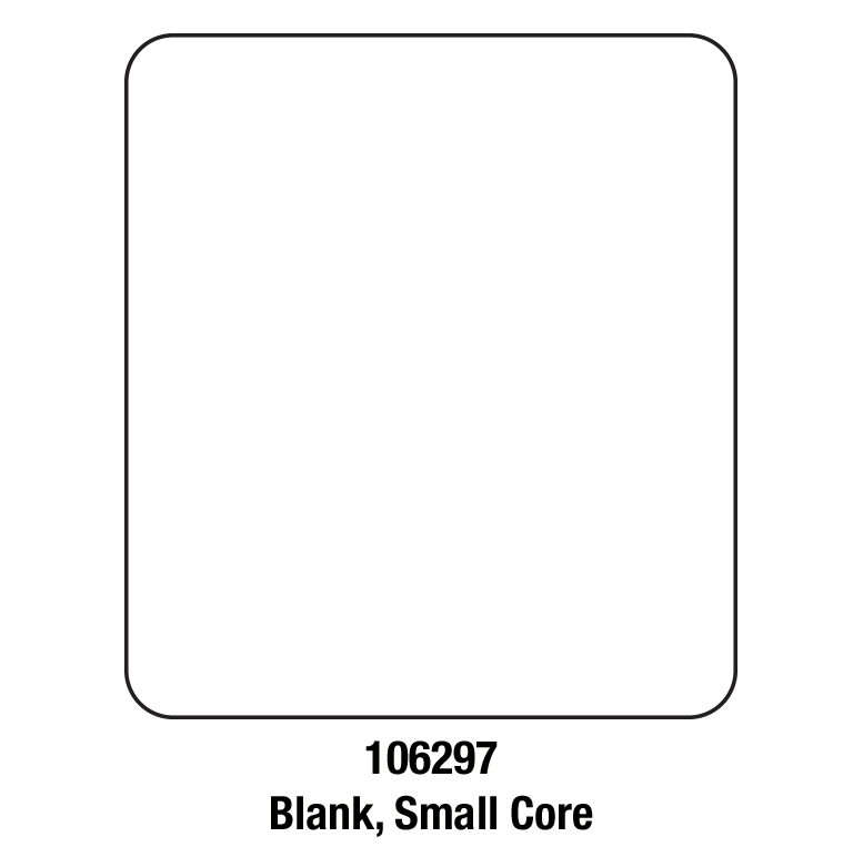 | 107808 | 64 × 73 mm (2.52 × 2.87 in) blank, 3 in core, 9 in outer diameter | 2,900 labels/roll | 5 rolls/case |