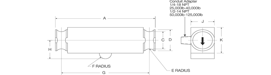 Double-ended beam load cell. Nickel-plated and environmentally sealed with stainless steel plates. Designed for center mounting and double link loading, compatible with Unilink/Translink™ suspension up to 75,000 lb. Capacities range from 25,000 to 125,000 lb. Complete with 35 ft of load cell cable. Optional 40 or 50 ft cable available with some capacities.