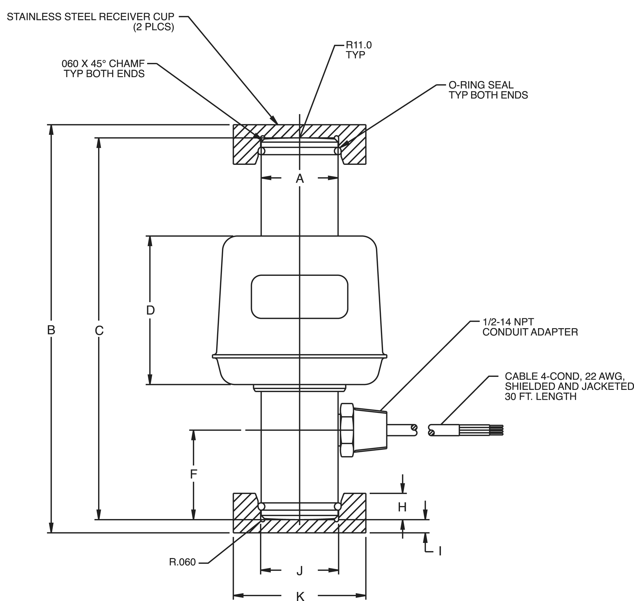 | 68918 | Load Cell,CSR RLSCA-50K 50,000lb 30ft 2mV/V 1050 OHMS EW SST WS NTEP III L 10M (includes top and bottom cups) |