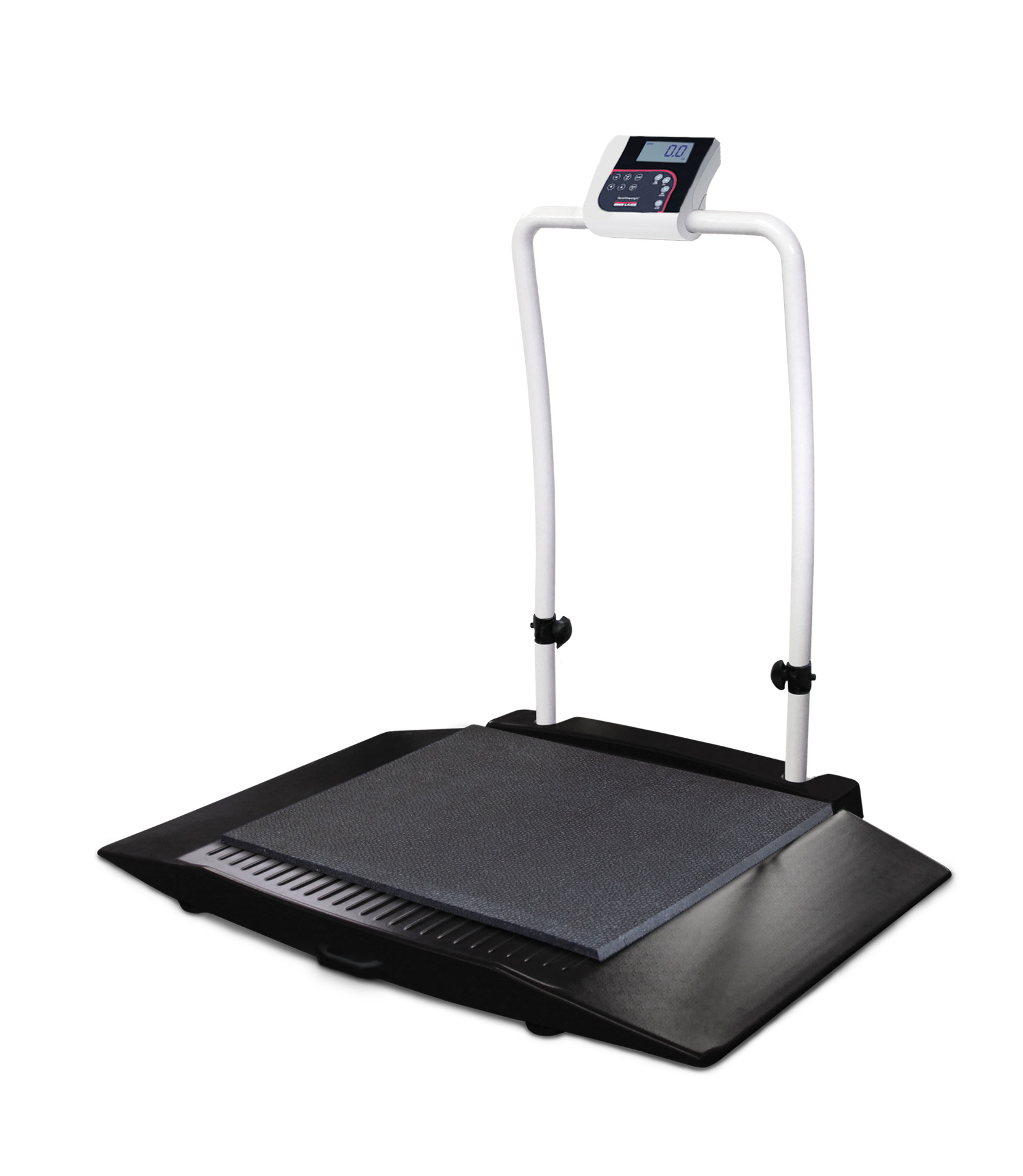 The Rice Lake VS-35 is a dual-ramp digital vet scale with a handrail that allows for high capacity, accurate weighing for a wide range of pets. With a capacity or 1,000 pounds or 450 kilograms, the VS-35 veterinary scale is ideal for large dogs. Convenient keypad tare reduces errors and increases efficiency. Foldable and light, this sturdy veterinary floor scale is easily transported on two heavy-duty rear wheels to any location.
