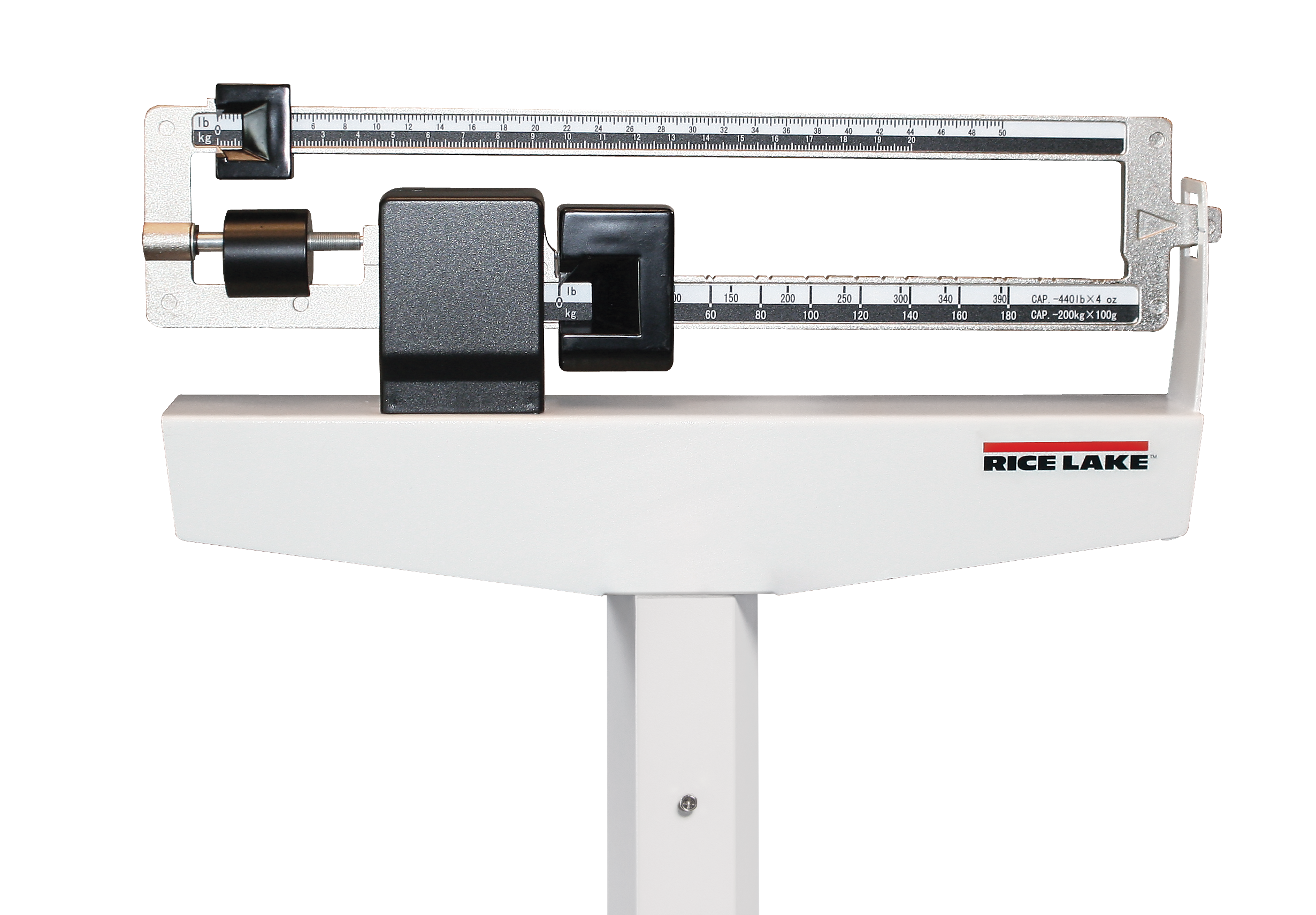 The RL-MPS-40 mechanical physician scale is a dual-read scale with a capacity of 440 pounds (200 kilograms) and 490 pounds (220 kilograms).