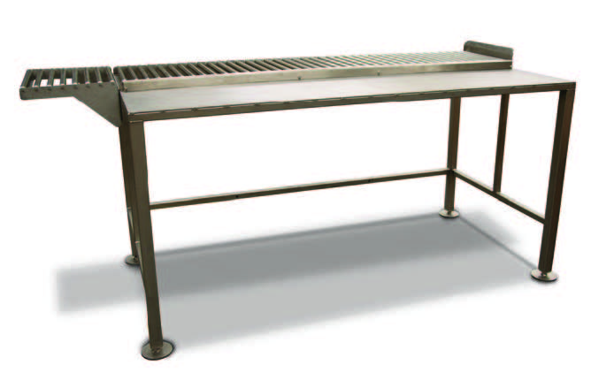 Our roller pack off table is built with a sturdy welded 304 stainless steel frame with a package stop.