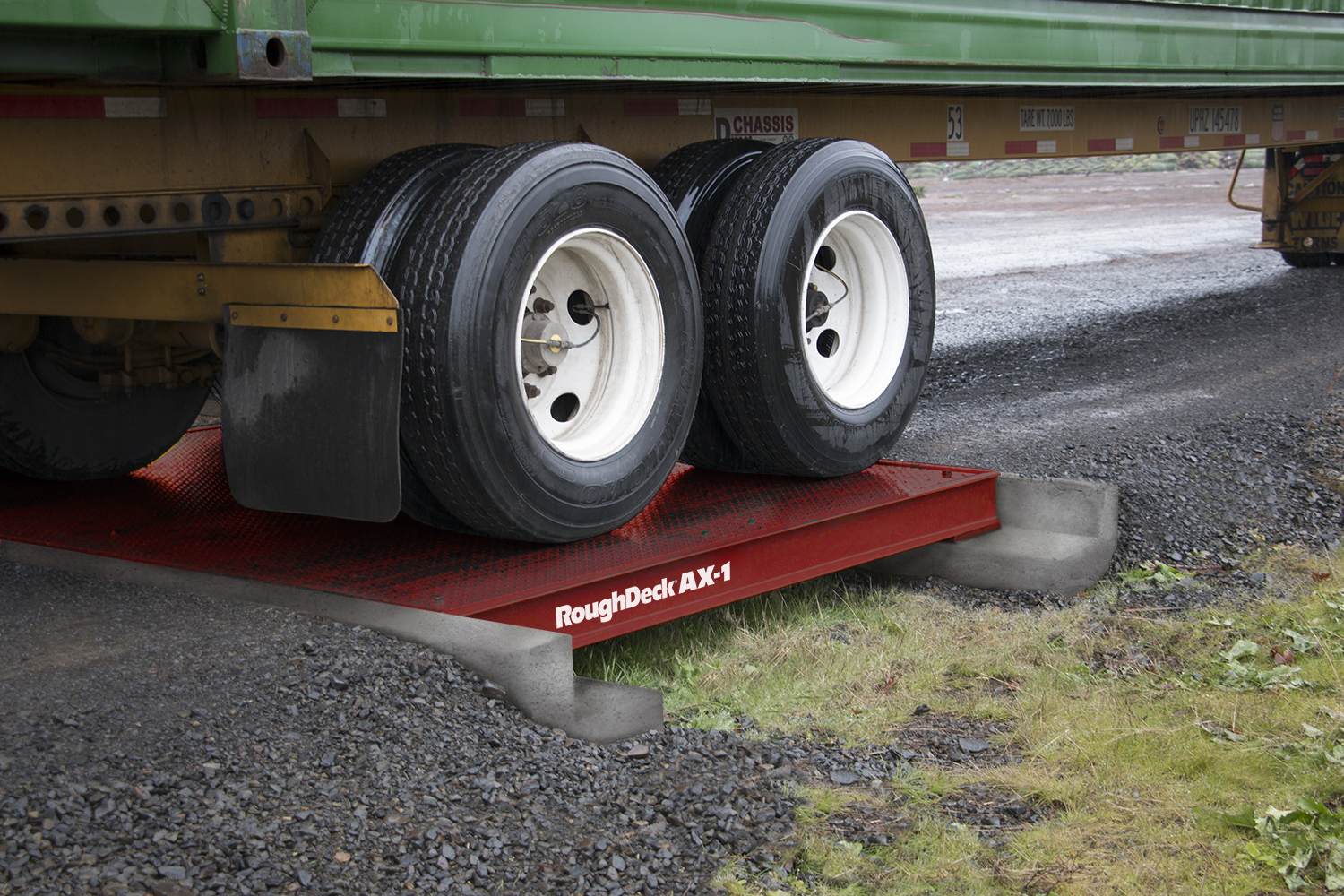 The RoughDeck® AX-1 axle scale's double steel decks provide rugged durability in challenging places.