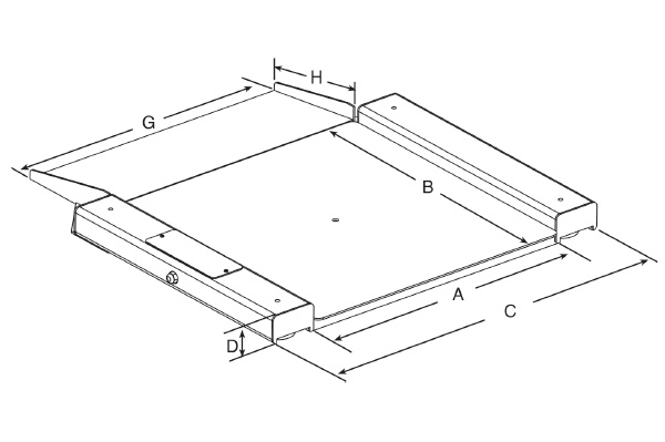 | Distance from floor to top of center weighing surface: 1.625 in Distance from floor to bottom of weighing surface: 0.31 in |