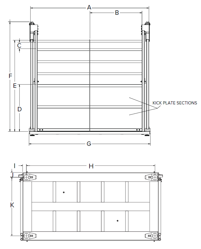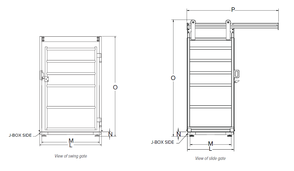 | G | 96.00 in | O | 77.50 in (swing gate) 90.09 in (slide gate) |