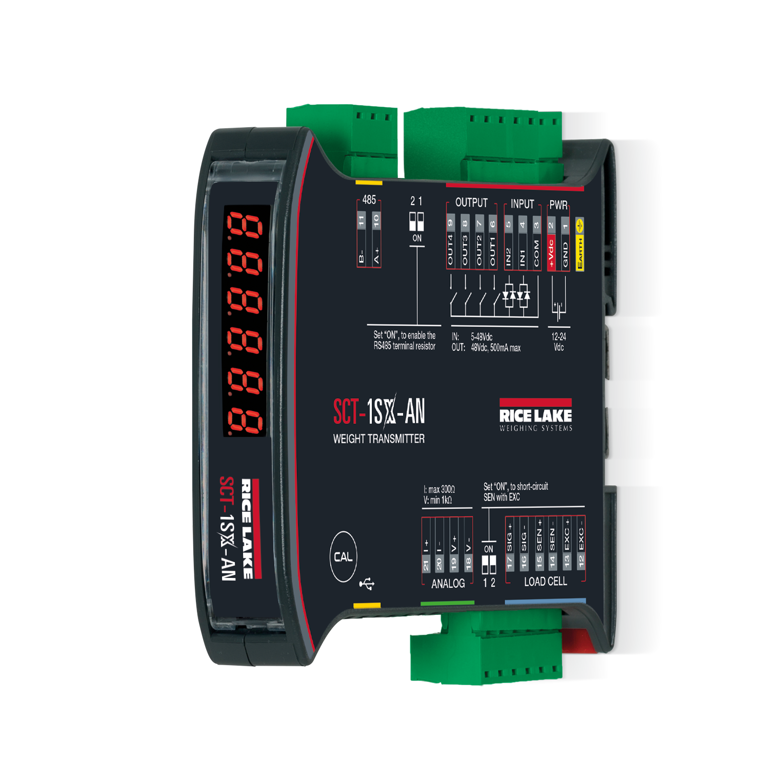 For PLC systems that require weight data from a scale, Rice Lake’s compact SCT transmitters deliver equivalent signal-conditioning function without the cost or bulk of a full size weight indicator/controller.