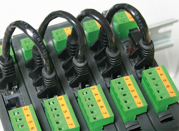The SCT-20 signal conditioning transmitter is DIN-rail mountable within a cabinet or control panel, where it serves to convert a scale’s load cell signals to analog output, serial output, or a specific network protocol.