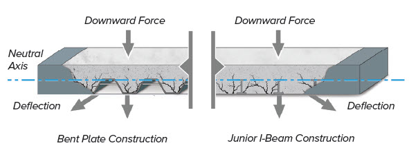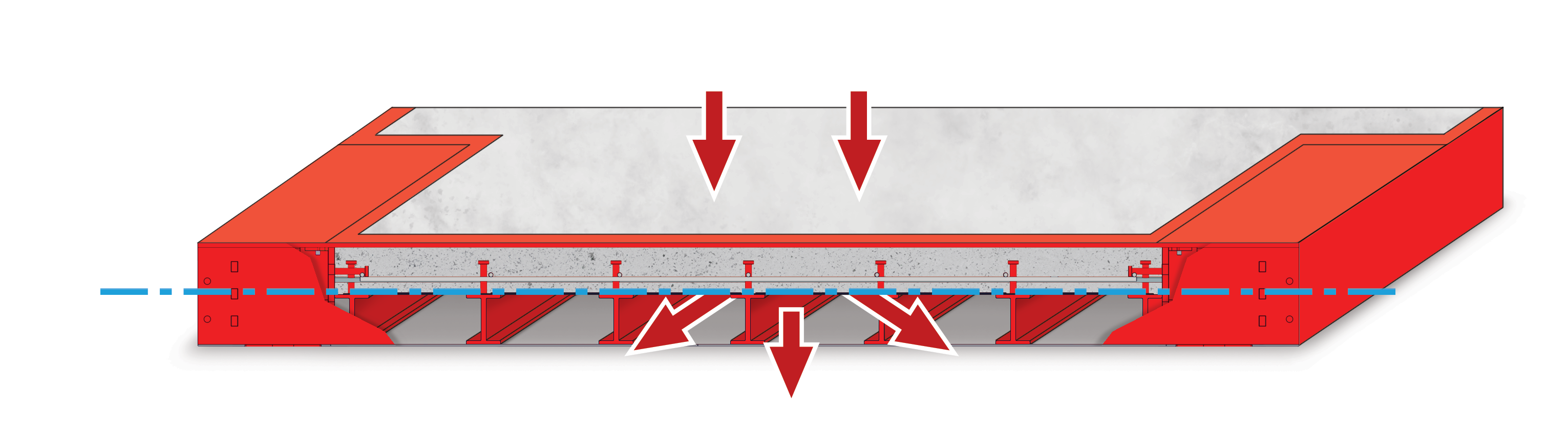 Many competitive weighbridges try to compensate for lighter steel or a lack of steel components by pouring a 9-, 10- or 12-inch concrete deck, often extending below the neutral axis. This can result in dangerous concrete bending, which can cause surface cracks after just a short period of use.