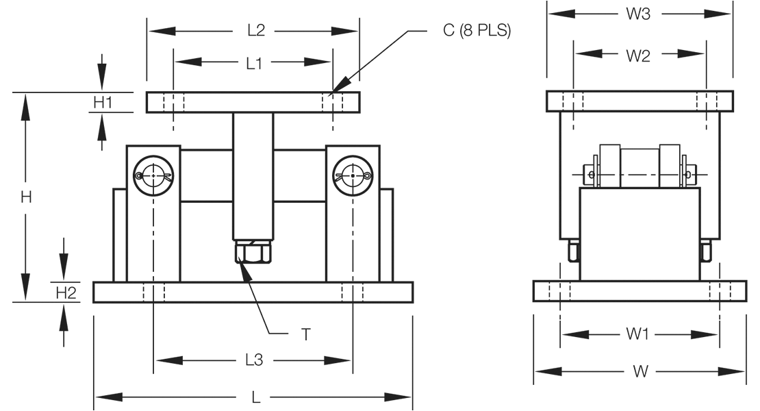 | Rated Capacity | C | H | H1 | H2 | L | L1 | L2 | L3 | T | W | W1 | W2 | W3 |