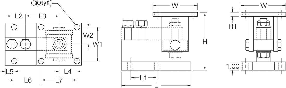 - Three or four RL1855 HE stainless steel mounts with RL32218S-HE NTEP Certified hermetically sealed stainless steel load cells