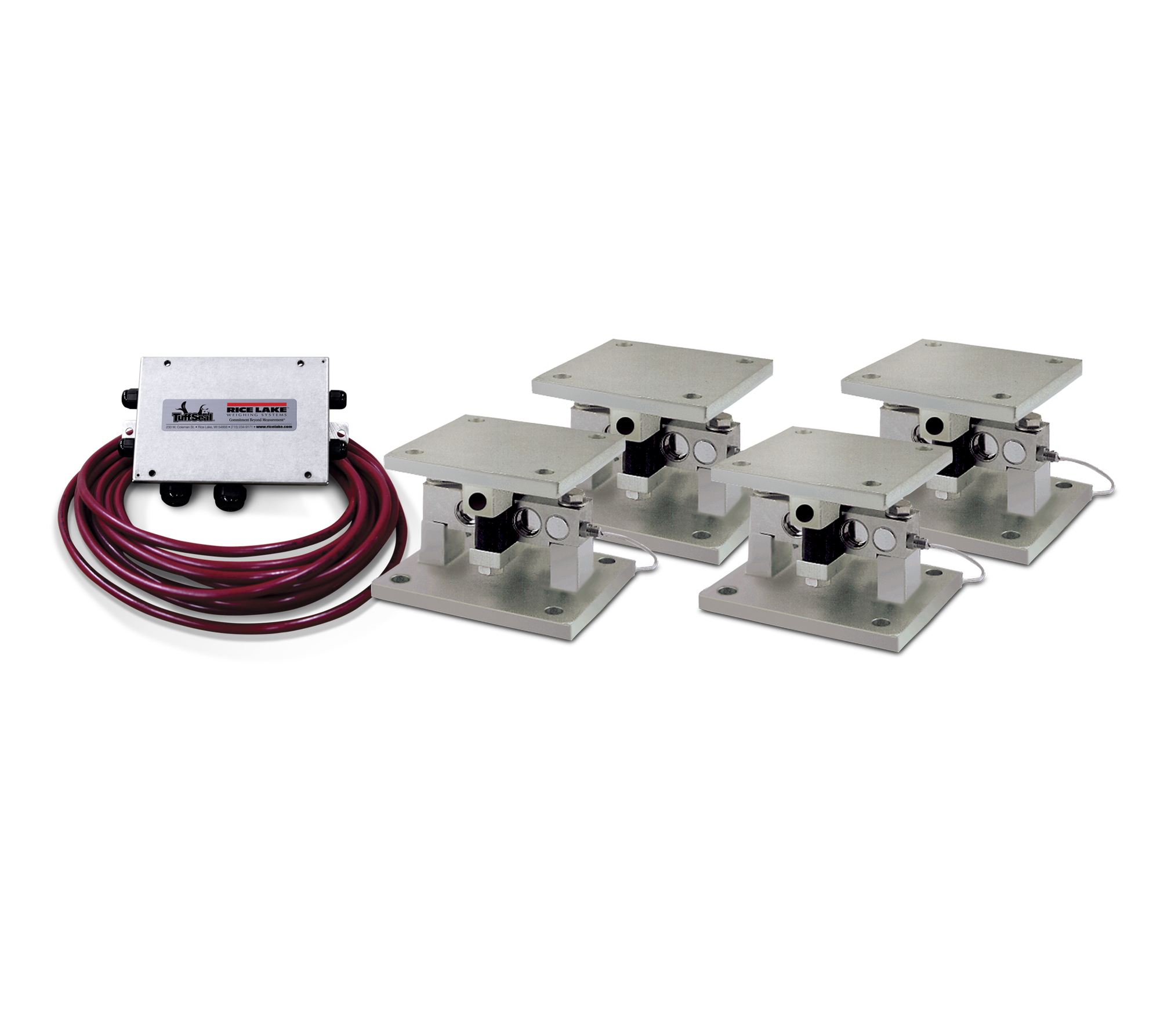 - Three or four RL2100 HE stainless steel compression mounts with NTEP Certified RL75060S or RL75058S-LP stainless steel, welded seal double-ended beam load cells