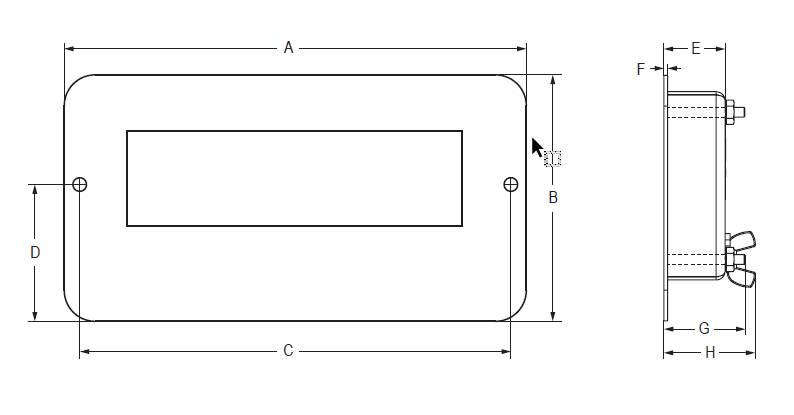 | B | 2.50 in (6.35 cm) | E | 1.90 in (4.83 cm) | H | 2.60 in (6.61 cm) |
