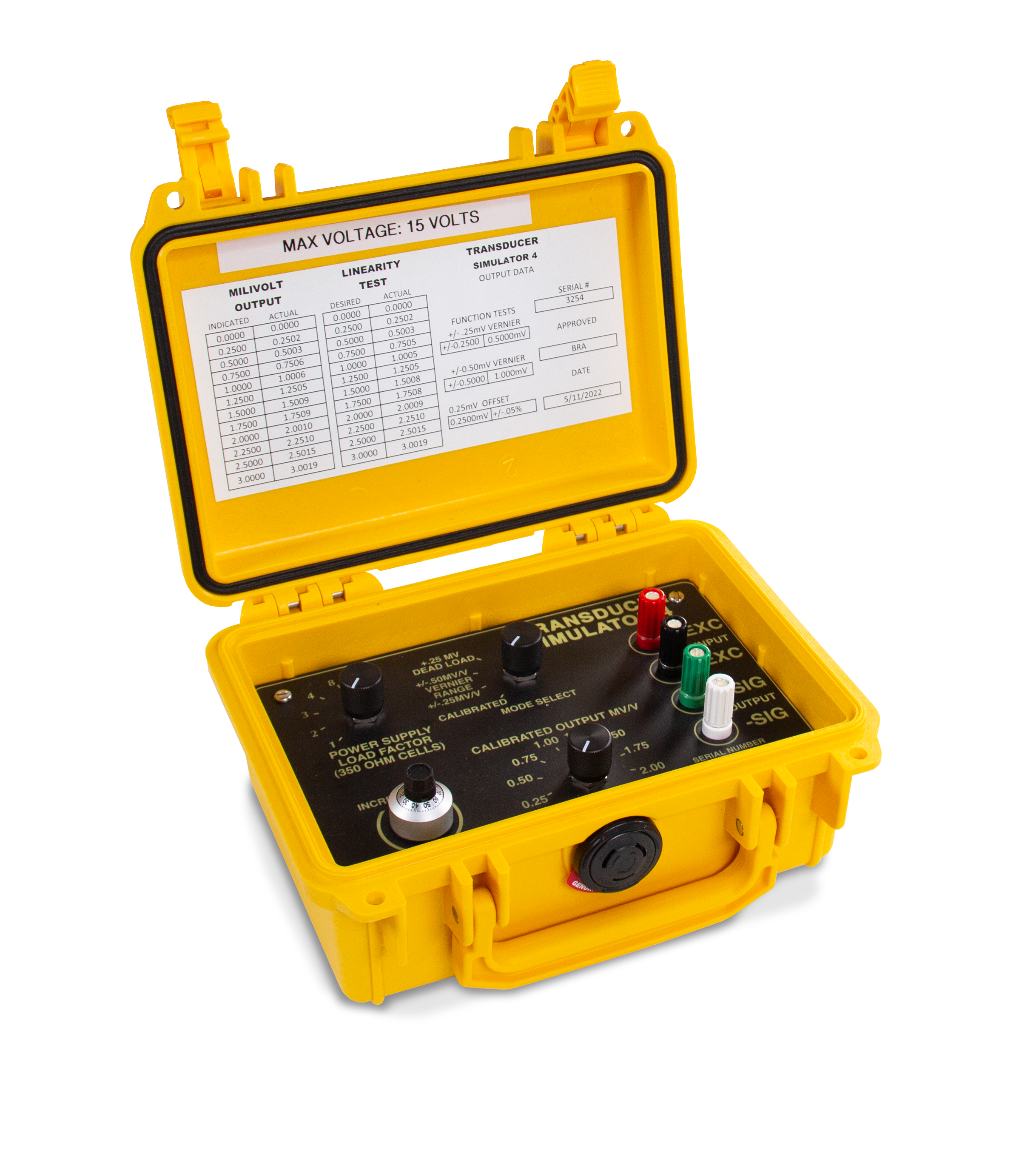 The Transducer Simulator 4 is a fully functional simulator for replicating a wide range of load cell scenarios. An all-in-one carrying case provides the portability and convenience required by field technicians.