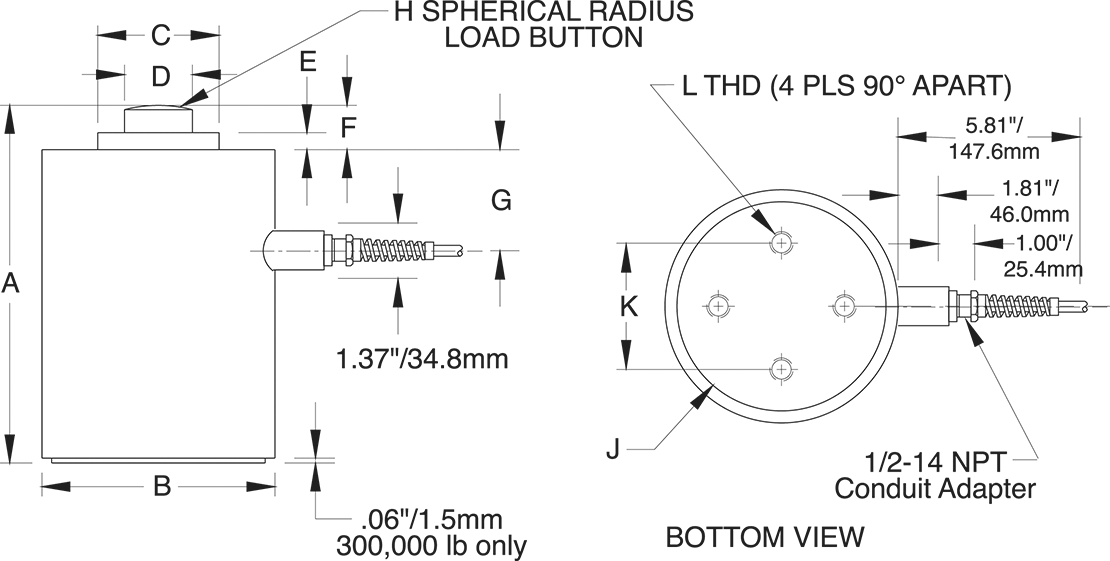 VPG® BLH® C2P1 Alloy Steel, Compression Canister Load Cell