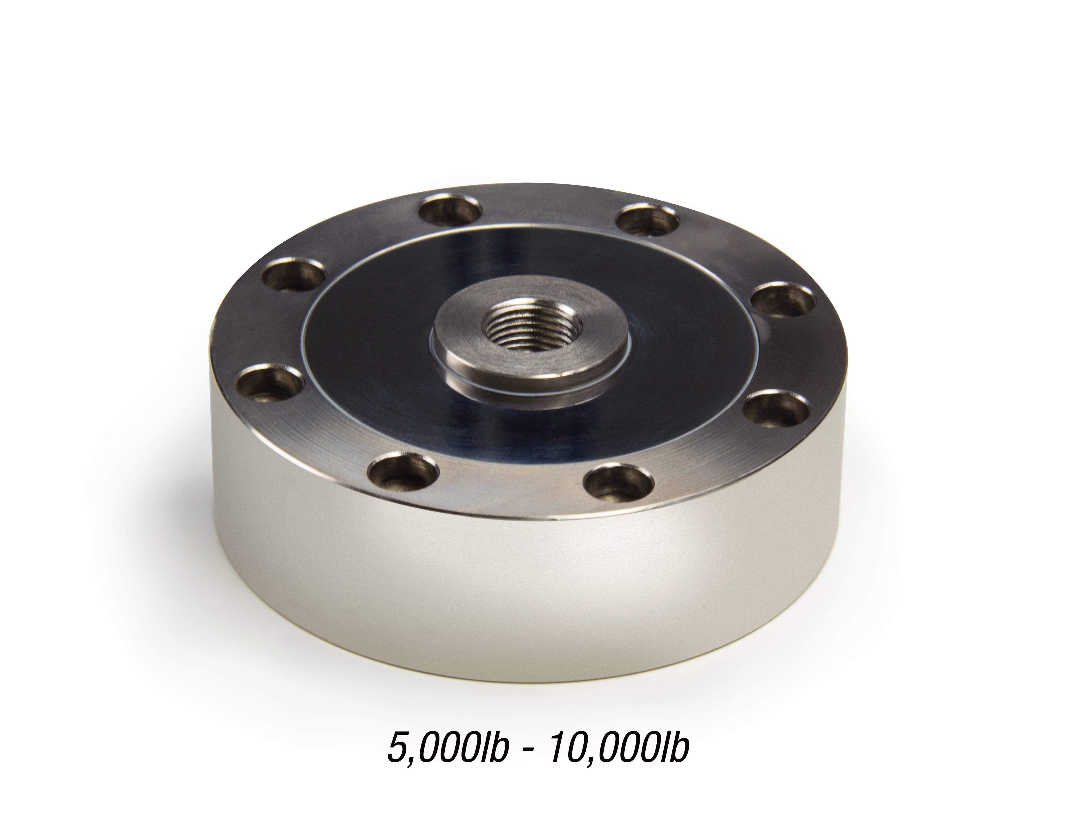 Environmentally protected, low-profile compression disk. 5,000 lb and 10,000 lb models can also be used in tension-loading applications. The shear web design provides excellent performance and a low-profile feature makes it ideal for applications where height is critical. Capacities range from 5,000 to 100,000 lb. Complete with 50 ft of load cell cable.