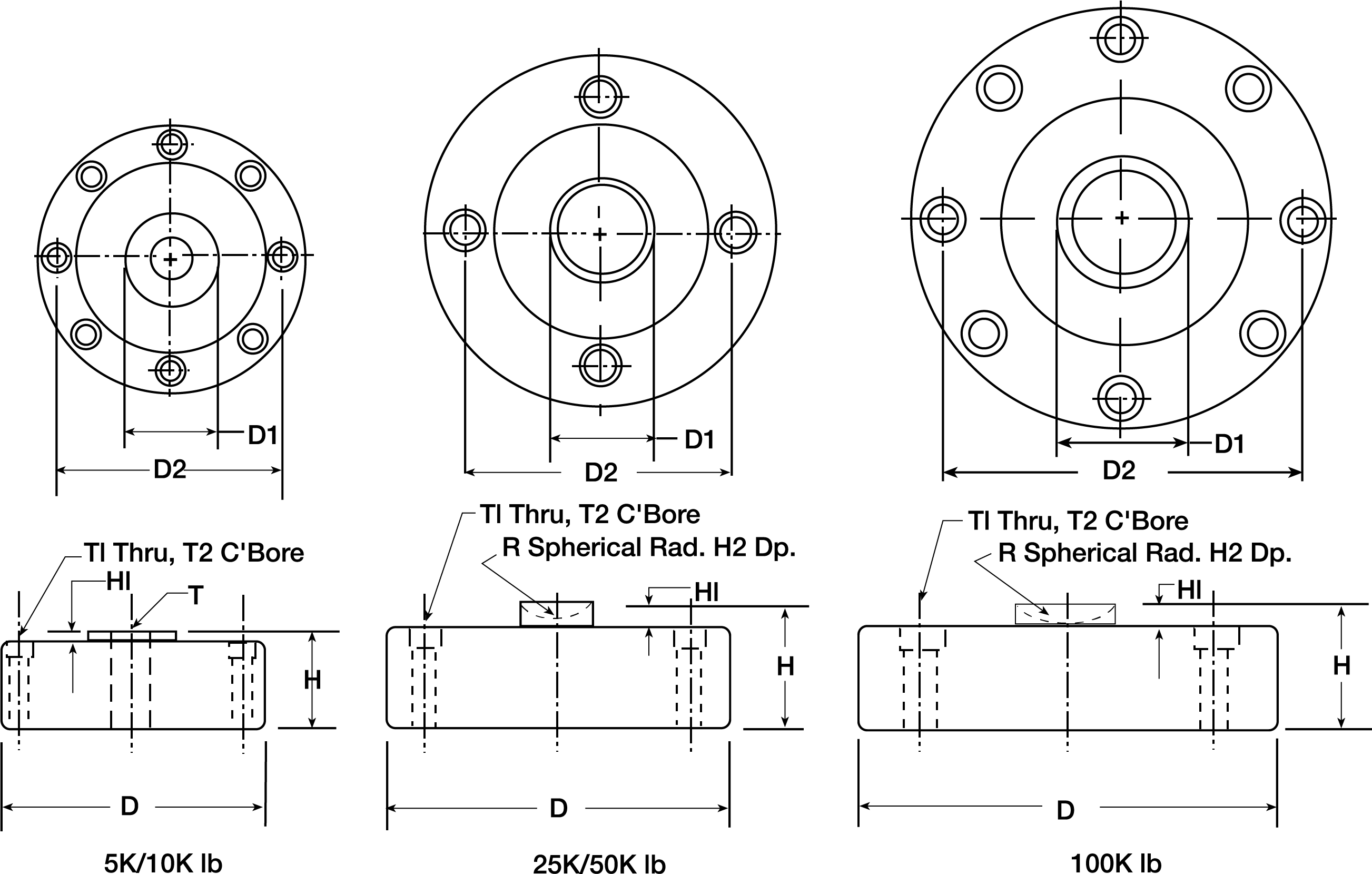 | *5,000lb and 10,000lb models can be used in compression and tension load applications Load Cup pn 33616 is required for compression applications on the 5,000lb and 10,000lb capacity load cells and is sold separately |
