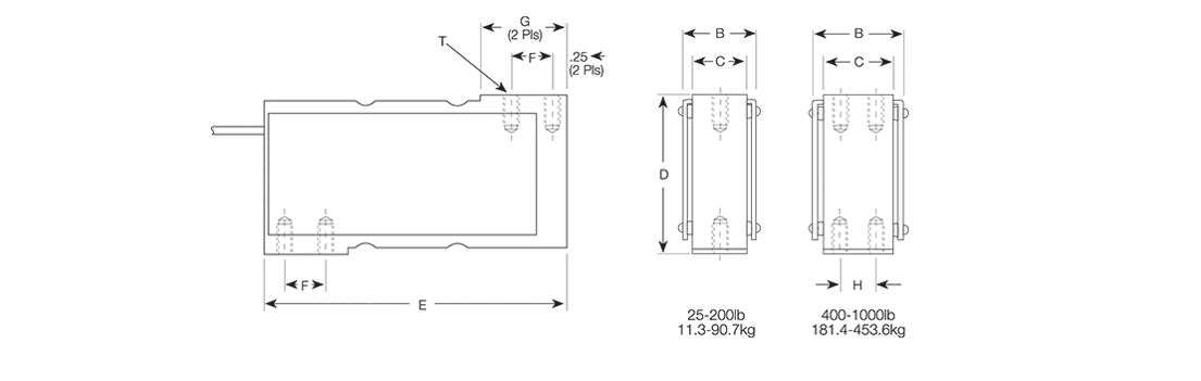 | 400 to 500 | 1/4-28 UNF × 0.75 DP | 1.25 | 1.00 | 3.00 | 6.00 | 1.00 | 1.50 | 0.50 |