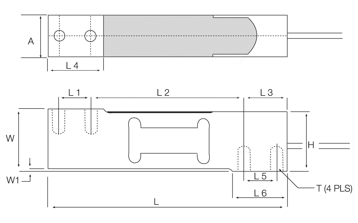 A lower profile single point load cell for platform weighing. This model is constructed of aluminum and is a two-beam design. This design offers high immunity to side forces and is specially coated to provide humidity resistance. Capacities range from 1 to 100 kg. Complete with 3 m of load cell cable.
