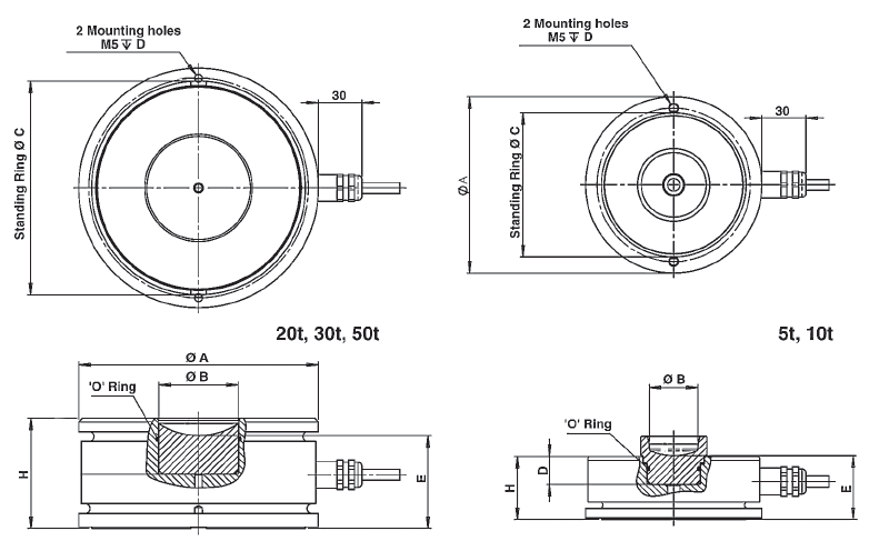 Bending ring load cell with low profile design ideal for high-capacity weighing applications, including weighbridges, tanks, silos, high-capacity platform scales and force measurement. OMIL-approved capacities range from 5,000 to 30,000 kg.